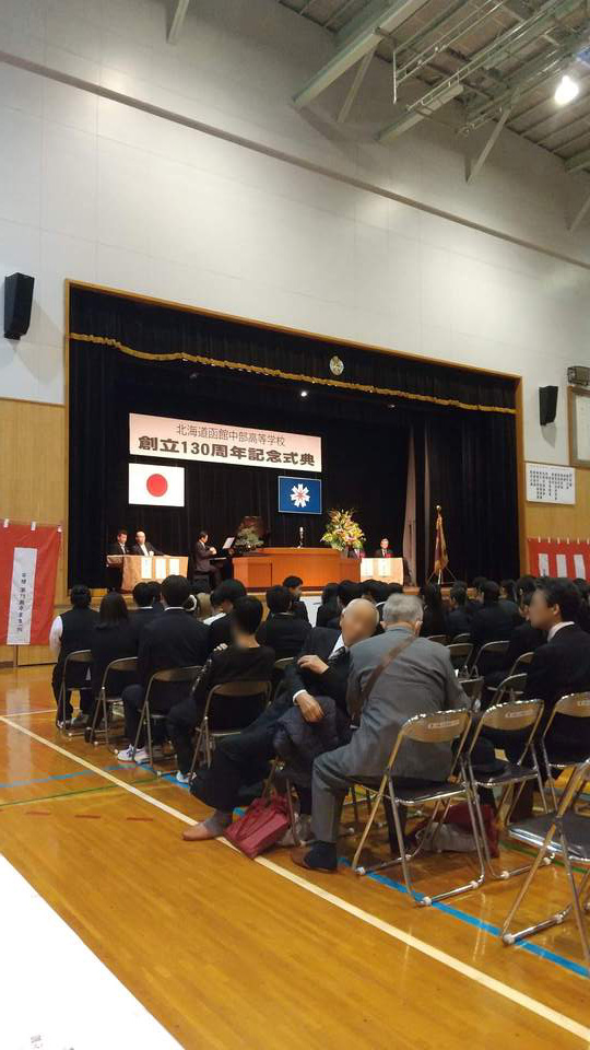 式典は学校体育館、祝賀会はベルクラシック函館が会場です。